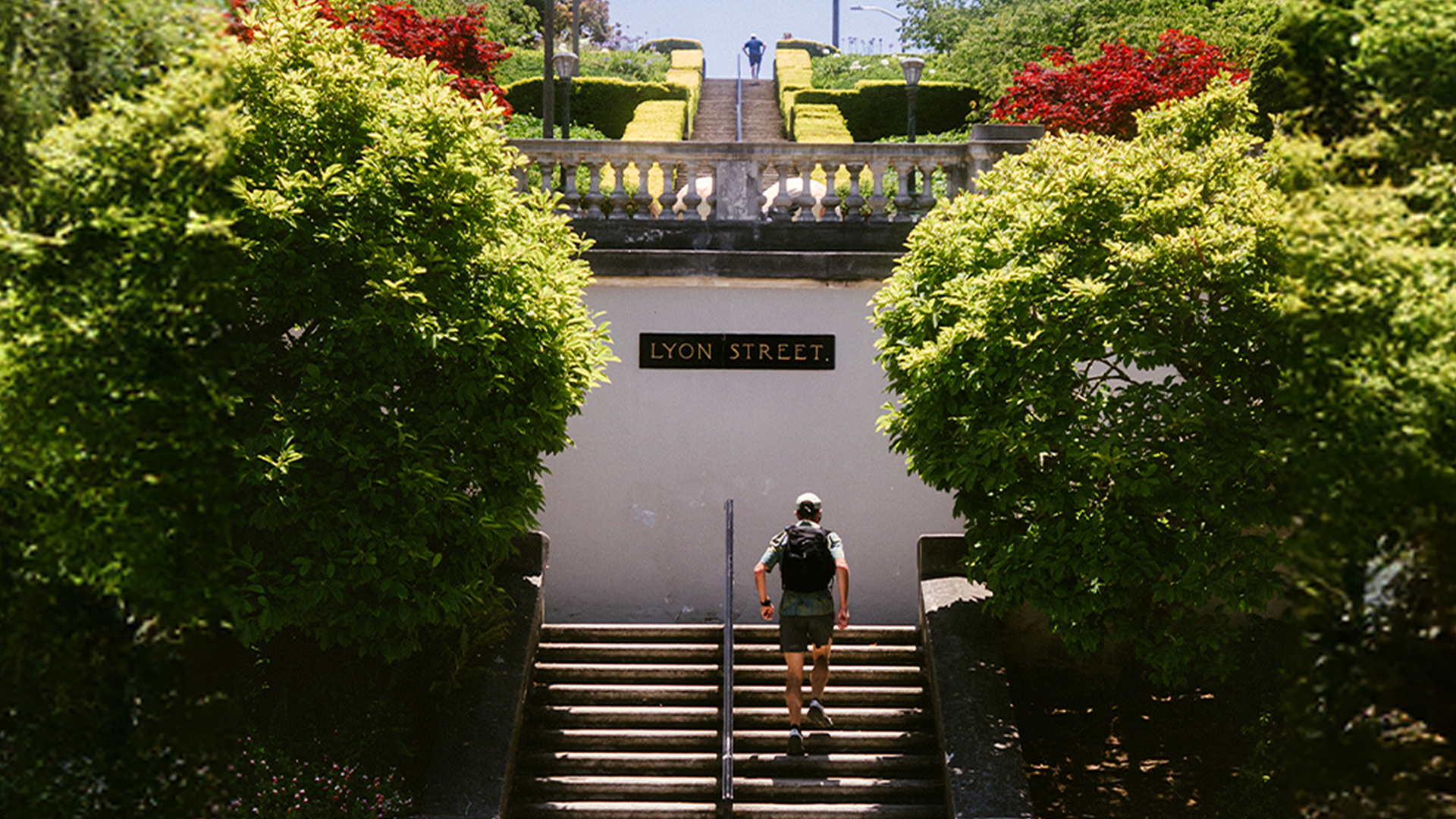 From Telegraph Hill, I made my way up and over Russian Hill via the legendarily windy Lombard street where steps are cut into the sidewalk to help walkers from straining their achilles tendons. From there I continued on to the edge of the Presidio where the Lyon Street Steps climb alongside mansions on one side and the quiet forest of eucalyptus and cypress planted by the US Army from the 1880’s through the 1940’s on the other. While normally there are at least a few folks repping the stairs, today I had the stairs to myself.