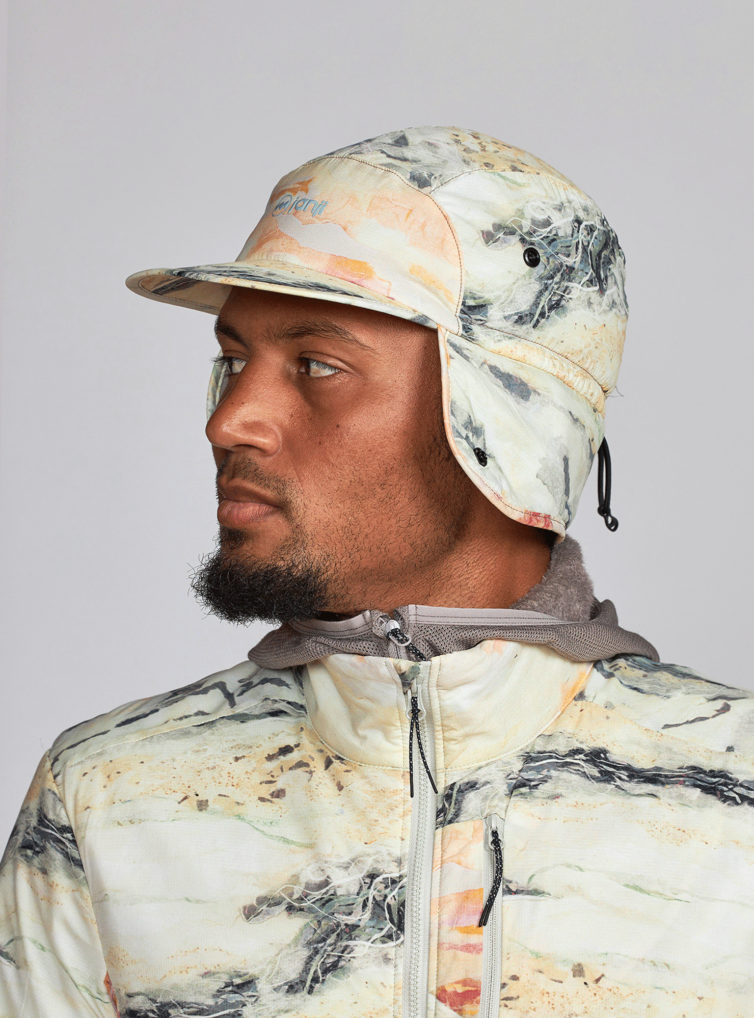 • Ear flaps can be flipped down for warmth or flipped up and secured with snaps
