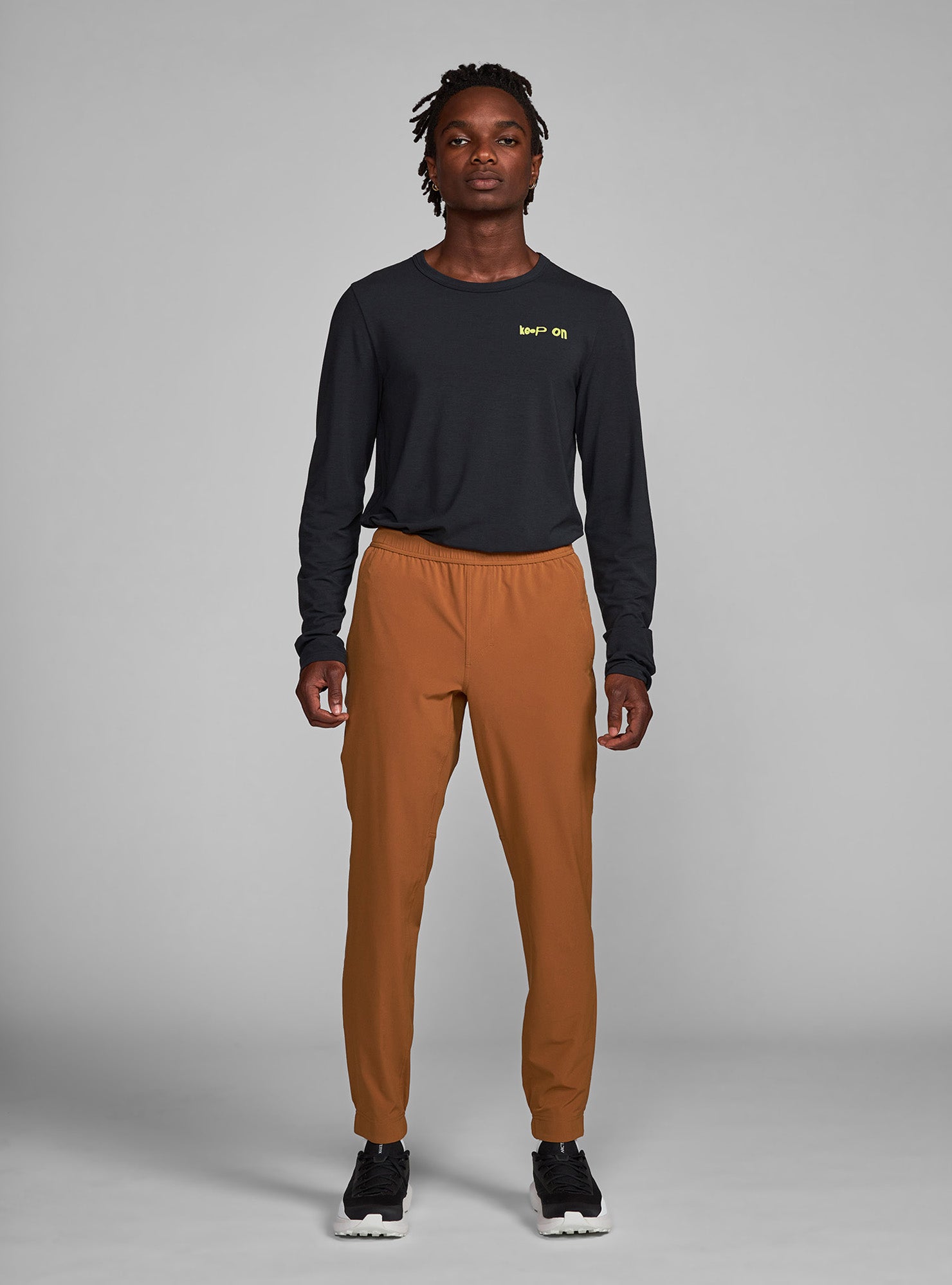 The Transit Tech Pant has a more tapered ankle for a sleek fit.